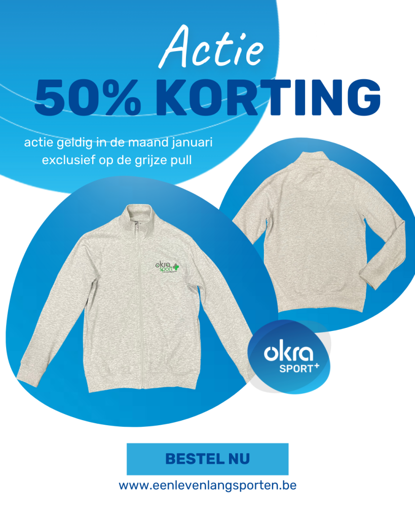 Heel de maand januari kan je een OKRA-SPORT+ pull kopen aan 50% korting.