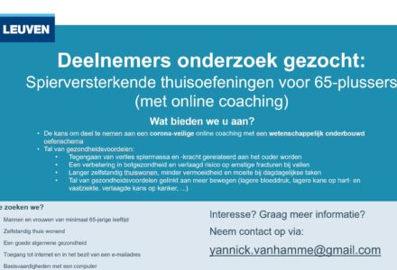 lees meerGEZOCHT: Deelnemers masterthesis: “Spierversterkende thuisoefeningen voor 65-plussers (met online coaching)” In het kader van hun masterthesis…