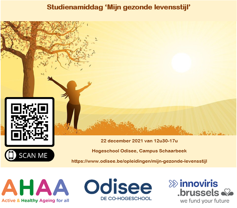 De onderzoekers van het ‘Active and Healthy ageing project’ (AHAA) van de Hogeschool Odisee bieden een gratis studienamiddag aan op 22 december 2021 van 12.30 – 17 u om (Brusselse) burgers te informeren over gezonde levensstijl.