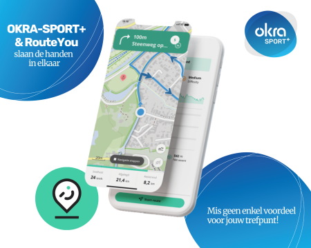 OKRA-SPORT+ heeft een samenwerking met RouteYou waarbij jouw trefpunt gratis toegang krijgt tot een RouteYou Premium-account ter waarde van โฌ200. Met een Premium-account kan je bestaande routes bewerken, zelf routes maken, routes afdrukken met jouw trefpuntlogo op, advertentievrij surfen, offline navigeren met de app, gratis webinars van RouteYou volgen en nog zoveel meer. Klik hier voor wat je allemaal kan doen met een premium-account. Leden van jouw trefpunt krijgen bovendien jaarlijks een korting van 30% op een PLUS jaarabonnement.