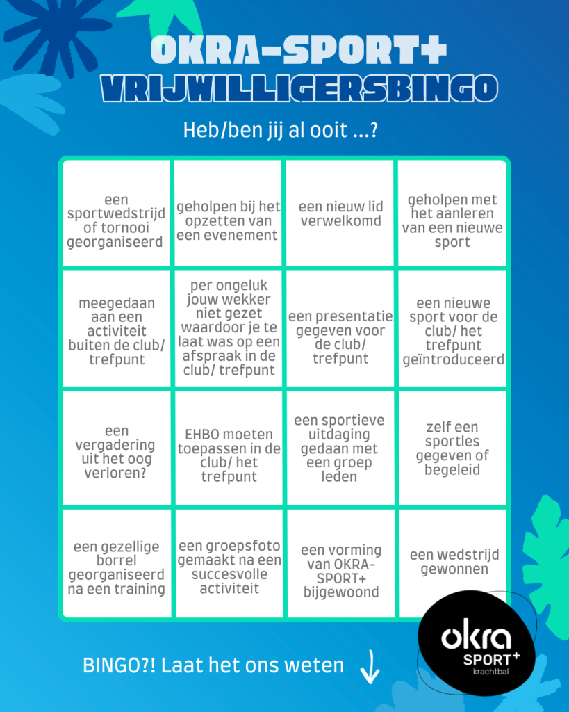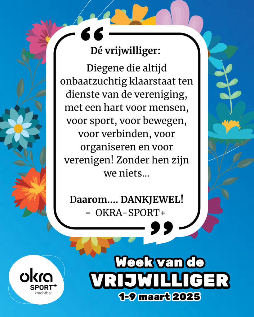 πΏππ£π πππ¬ππ‘, ππππ«π§πππ¬ππ‘π‘ππππ§! Zet jouw vrijwilligers in de kijker door een foto te posten op sociale media met de hashtags: Β #topvrijwilliger #okrasportplus.