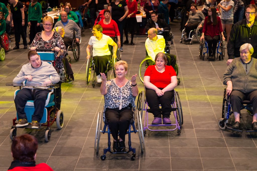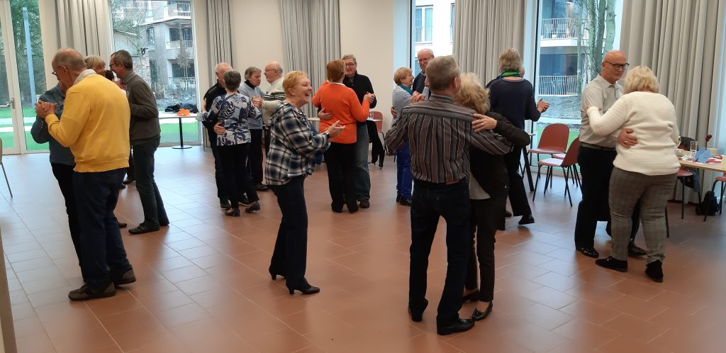 Leona: Ja hoor, onze eerste groep bestaat vooral uit recreatieve dansers. We dansen op klassieke balroommuziek, maar tevens op disco. Mambo en Salsa zitten ook in ons danspakket evenals lijndans en fundans. Natuurlijk passen we de snelheid van de muziek aan. Het gebeurt dat onze rolstoelgebruikers zelf te weinig armkracht hebben om de bewegingen zelfstandig uit te voeren, maar dan zijn er de familieleden of vrijwilligers om een handje te helpen. Onze “muzikale” duwers.