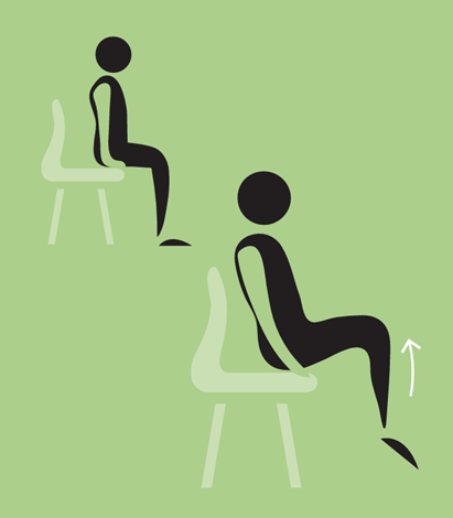 - Ga goed rechtop zitten op het puntje van de stoel, voeten plat op de grond.