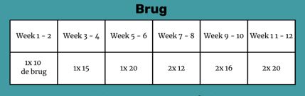 - Bij elke oefening vind je de opbouw over 12 weken