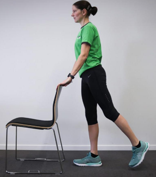 - Ga rechtop staan met je handen tegen een muur of op een stoel voor balans.