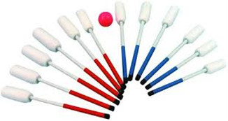 - Het spel vindt plaats op een kwart van een hockeyveld. Afhankelijk van de grootte van de teams maak je het speelveld groter of kleiner.