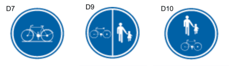 Opgelet: Het verkeersbord D10 duidt een deel van de openbare weg aan dat voorbehouden is voor het verkeer van voetgangers en fietsers. Zij moeten dit deel van de weg volgen. Volgens het verkeersreglement mogen fietsers de voetgangers die er zich bevinden niet in gevaar brengen. Bestuurders van speed pedelecs mogen daar dus niet rijden.