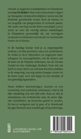 “De wandelingen leiden je door bijzondere en ongerepte landschappen en natuurgebieden over heel Vlaanderen.” – luidt het bij Uitgeverij Luster. “Voor wie zin heeft in meer, deelt Lus ook haar favoriete eet-, slaap- en andere plekjes in de omgeving.”