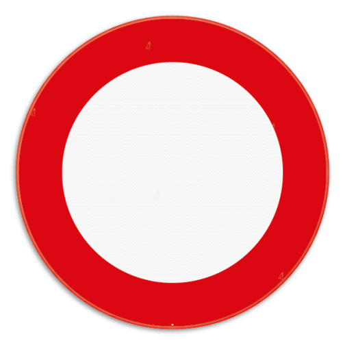 Dit bordje (op steel) is een reproductie, langs beide kanten, van het verbodsbord C3 d.w.z. een witte schijf met rode rand. Het moet een middellijn hebben van ten minste 15 cm en het moet voorzien zijn van:
