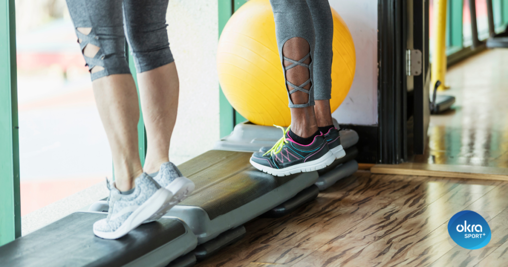 Op de trap: Ga op een traptrede staan met de het voorste deel van de voet (de bal van de voet) en houd de trapleuning licht vast. Duw vervolgens de hakken omlaag totdat je spanning voelt op de achillespees en kuitspier. Duw jezelf weer omhoog, zodat je op de tenen op de trede staat. Hou even vast en zak weer terug in de startpositie. Wissel na 10 herhalingen van been.