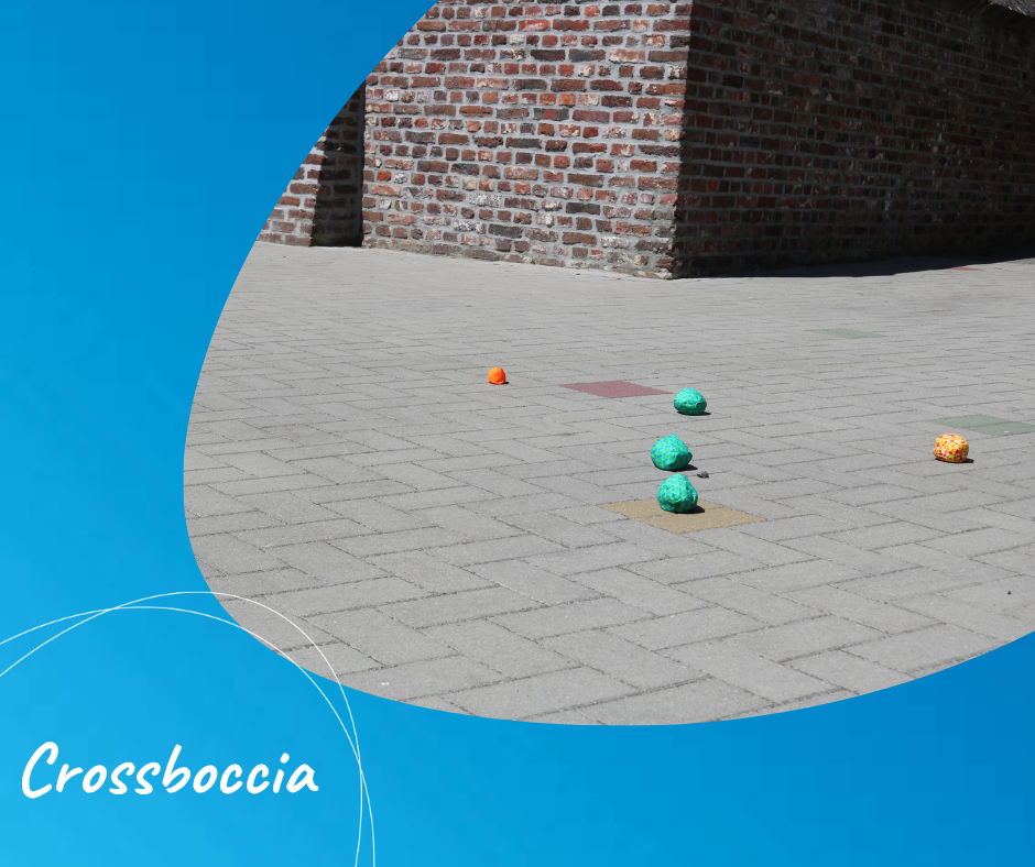 Crossboccia is een variant op petanque. Een specifiek speelveld is niet voorzien. Dit betekent dat je overal (stadspark, bos, parking, vergaderzaal of burelen, inkomhal, …) crossboccia kunt spelen.