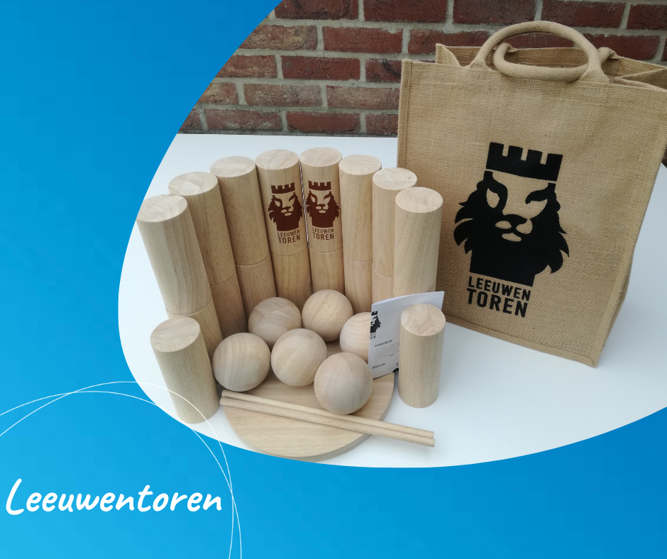 Leeuwentoren is een leuk werpspel waarbij je a.d.h.v. houten kanonskogels de soldaten van de tegenstander omvergooit. Je wint het spel als je de leeuw als allerlaatste van de toren van je tegenstander gooit.