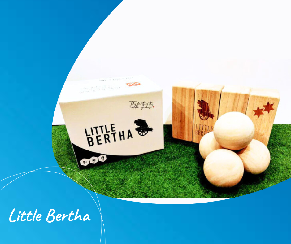 Little Bertha, een buitenspel voor jong en oud, combineert darts en petanque. De naam komt van het kanon Little Bertha, een Duitse Minenwerfer. Elke ronde heb je 4 ballen om te gooien en zijn er 4 blokken die je moet omgooien: het kanon
