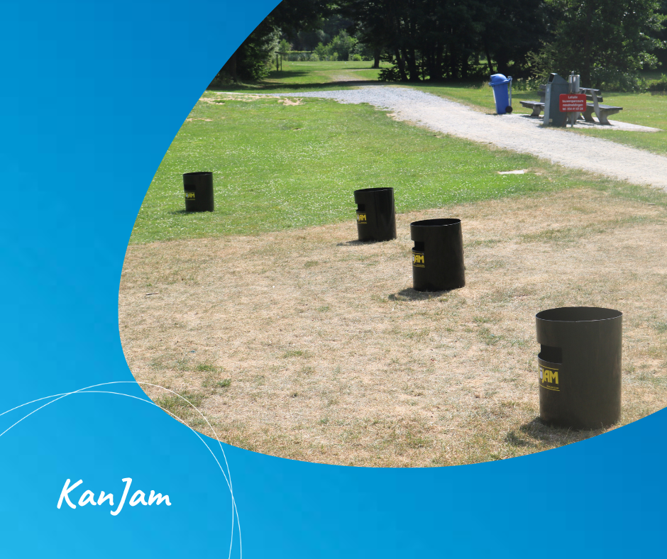 Het spel Kanjam bestaat uit een frisbee en twee tonnen die gebruikt worden als doel. Het speldoel van KanJam is om samen met je teamgenoot punten te scoren door een frisbee in een ton te werpen of te laten afwijken zodat deze de ton raakt2. Het spel wordt gespeeld in teams van twee, waarbij de ene speler de frisbee gooit en de andere speler helpt door de frisbee te tikken of te sturen.